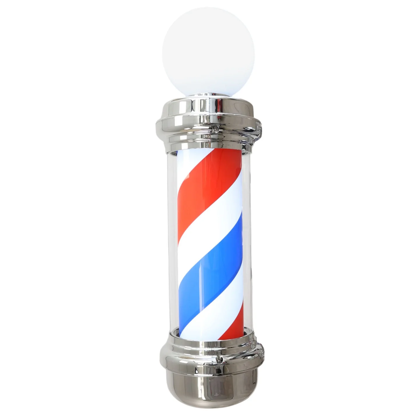 The Gabri Barber Pole features the unmistakable red, white, and blue (or classic red and white) rotating stripes, mesmerizing passersby and proudly announcing your trade. Integrated seamlessly into its design is a brilliant, highly visible LED “OPEN” sign, providing clear, energy-efficient notification that your chairs are ready. Constructed with durable, weather-resistant materials like high-quality acrylic and robust metal (such as chrome-plated ABS or stainless steel), this pole is built to withstand outdoor elements, ensuring long-lasting performance and enduring aesthetic appeal. Simple to install and designed for continuous operation, it?s an indispensable investment for any modern barber striving for classic excellence.